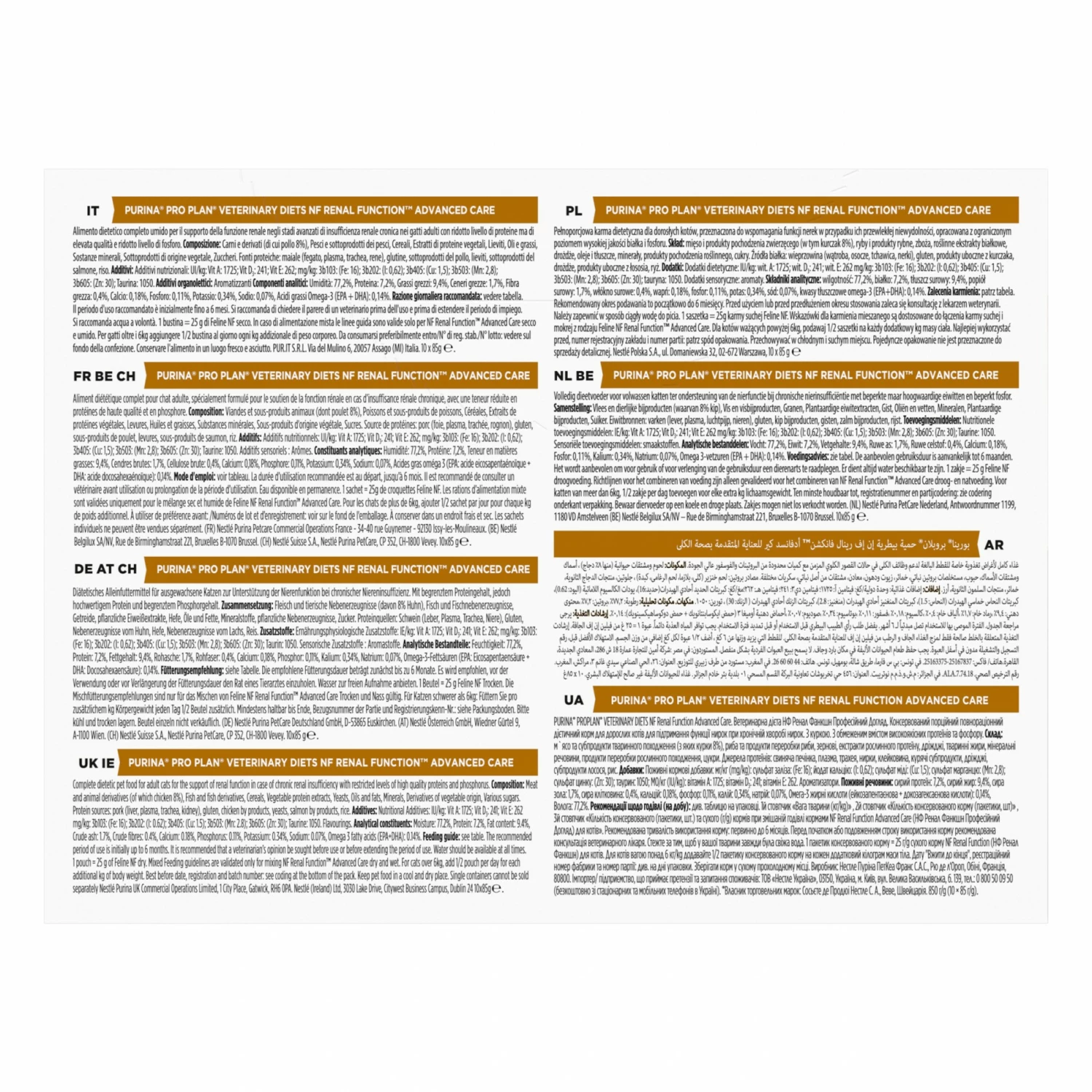 Pro Plan Veterinary Diets NF Renal Function Advance Care existe également sous forme de croquettes et de pâtée en mousse.