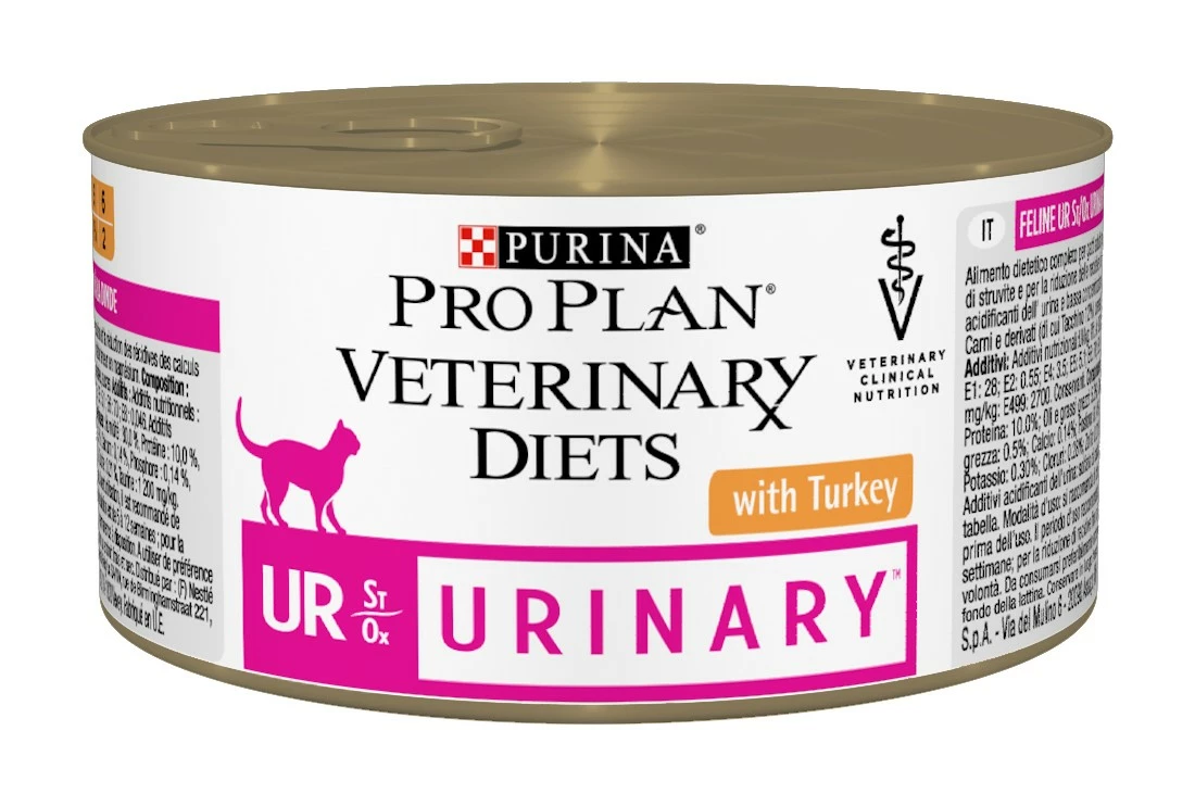 Pro Plan Veterinary Diets UR St/Ox Urinary est un aliment complet sous forme de boîtes de pâtée en mousse élaboré pour répondre aux besoins nutritionnels du chat souffrant d’une Maladie du Bas Appareil Urinaire Félin (MBAUF).