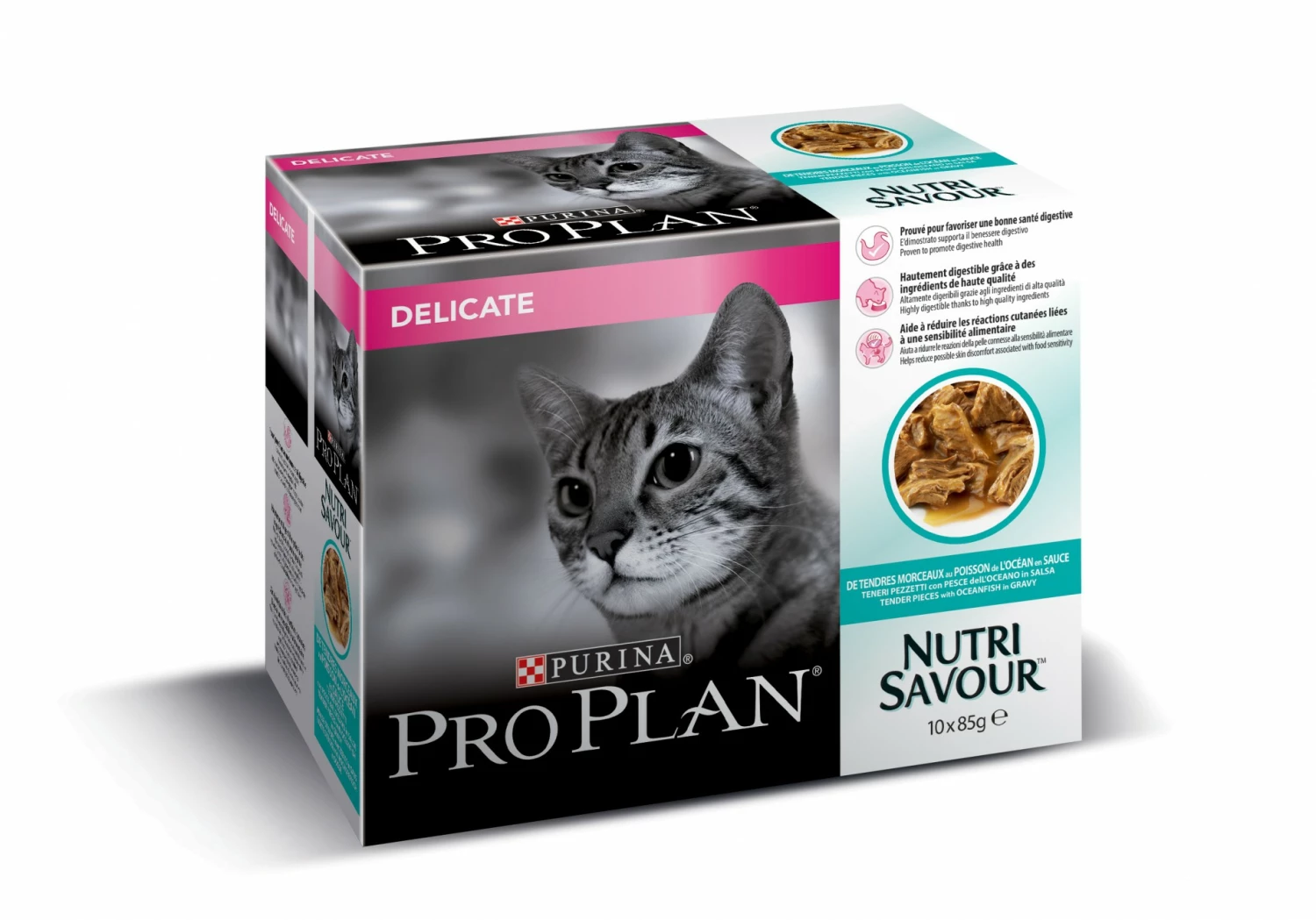 Proplan Delicate Nutrisavour est un aliment pour chats complet et Ă©quilibré qui apporte tous les nutriments indispensables Ă sa santĂ©. Il contient Ă©galement un prĂ©biotique dont l’efficacitĂ© est prouvĂ©e pour faciliter la santĂ© du tube digestif. Cette pâtĂ©e associe la nutrition que vous exigez pour votre chat Ă Â un goĂ»t savoureux qu’il va adorer !