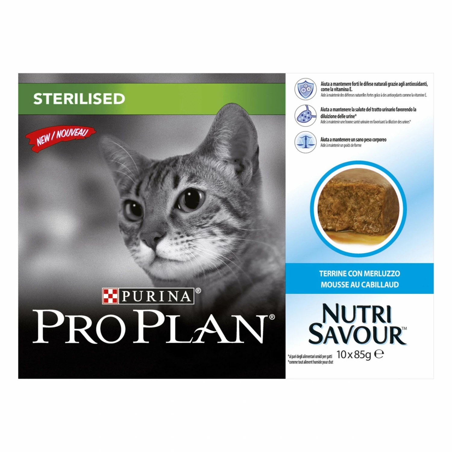 Les sachets Proplan Nutrisavour Sterilised en mousse sont élaborés pour répondre aux besoins des aux chats adultes stérilisés.