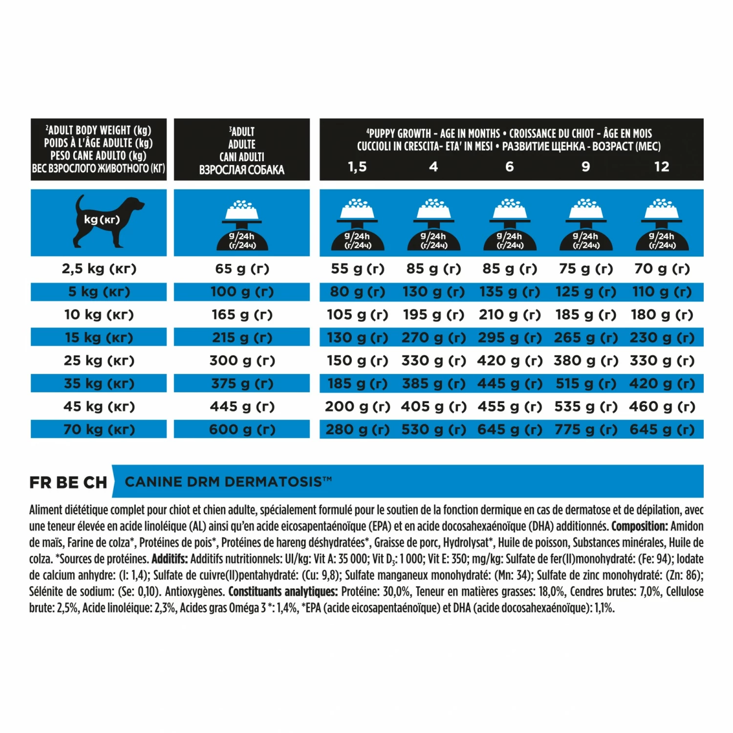 L’aliment Canine DRM Dermatosis est formulĂ© pour le soutien des fonctions cutanĂ©es en cas de dermatoses et perte de poils excessive chez les chiots et les chiens adultes