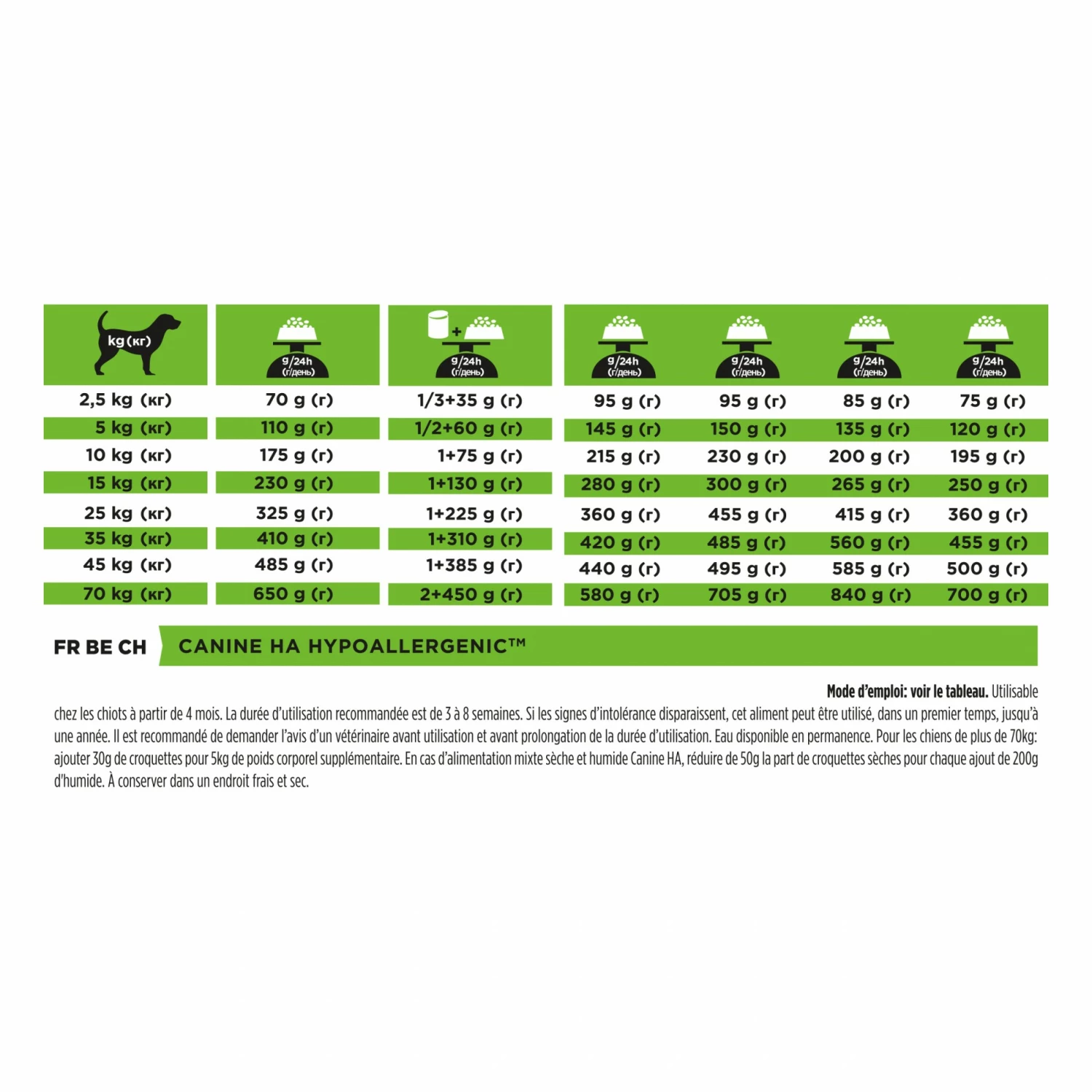 Cet aliment hypoallergénique est adapté aux chiens présentant des problèmes d’allergie et de sensibilité alimentaires.