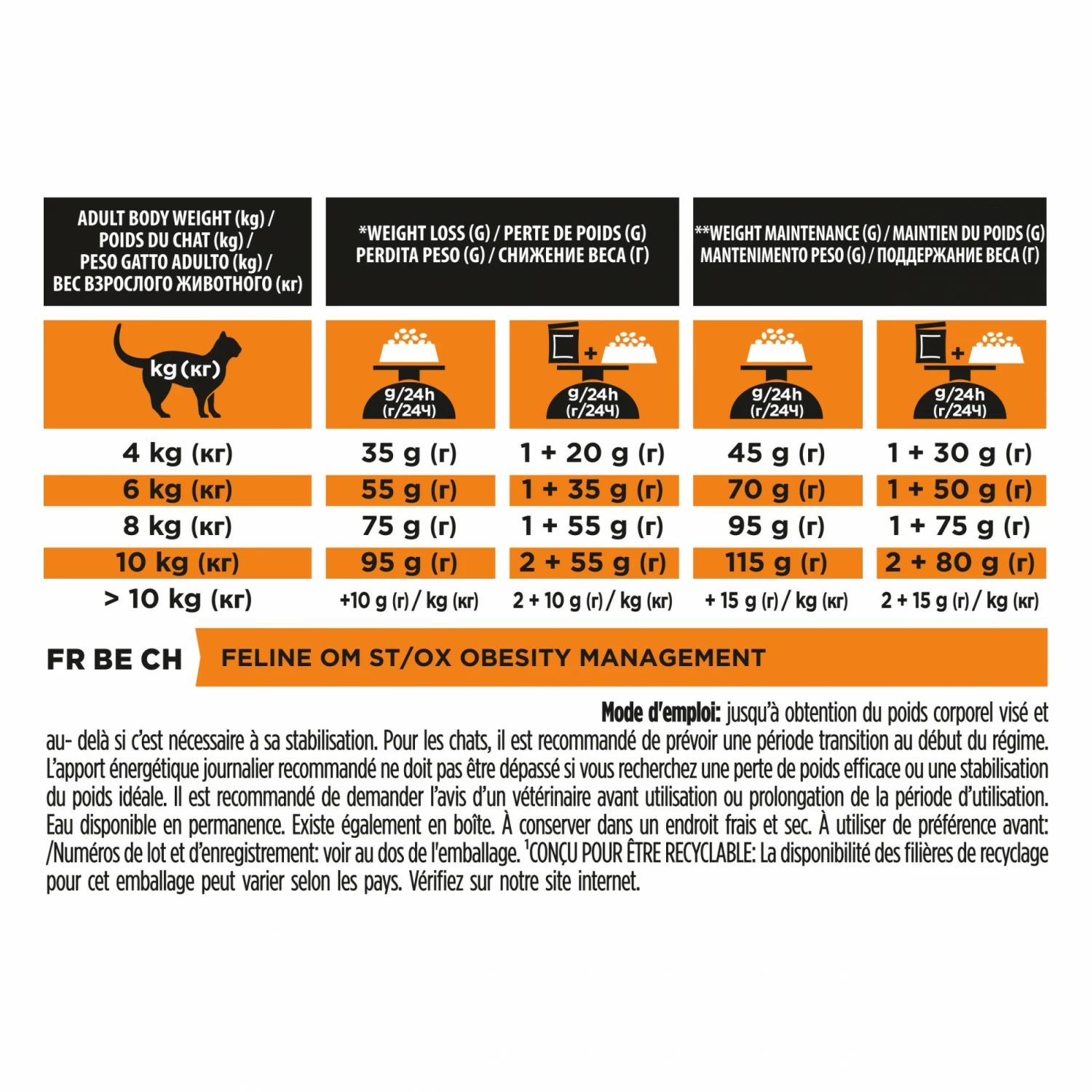 L’aliment Proplan Veterinary Diets Feline OM Obesity Management constitue un régime clinique formulé pour la perte de poids et le maintien de poids optimal chez les chats adultes grâce à ses caractéristiques et bénéfices :