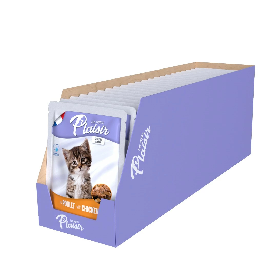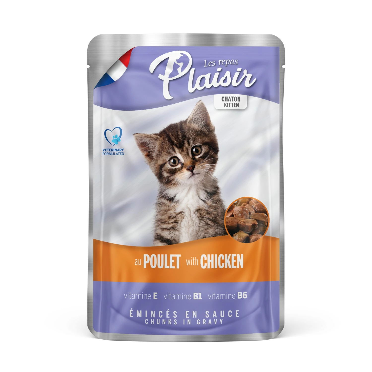Les sachets fraîcheurs Repas Plaisir Kitten sont spécialement conçus pour les chatons. Ils contiennent de savoureux émincés au poulet en sauce.
