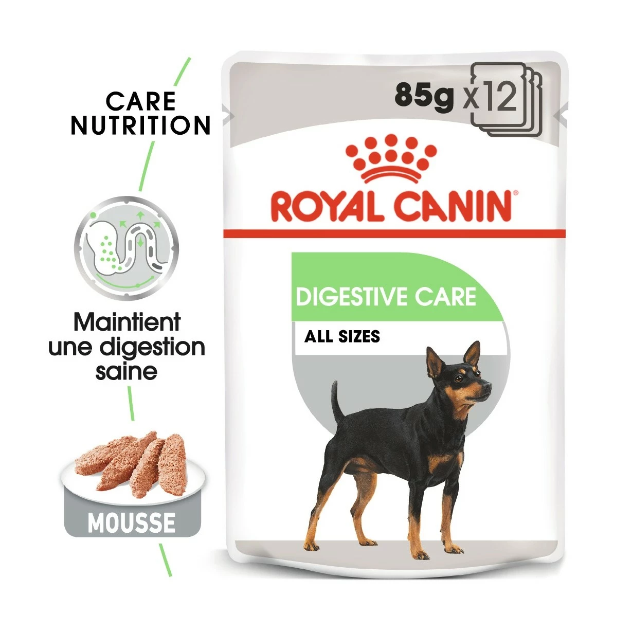 Les sachets fraîcheur ROYAL CANIN® Digestive Care conviennent aux chiens adultes de plus de 10 mois sujets à la sensibilité digestive.
