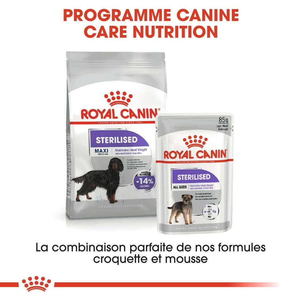 ROYAL CANIN® Sterilised Maxi existe aussi en sachet fraĂ®cheur pour une alimentation Ă©quilibrĂ©e et complĂ©mentaire et pour encore plus de plaisir !Â