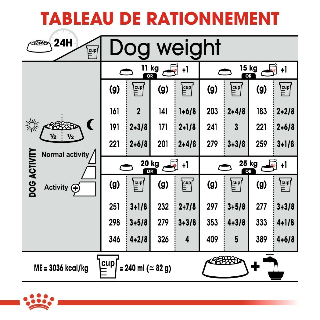 ROYAL CANIN® Light Weight Care Mini convient aux chiens âgĂ©s de plus d’un an et pesant entre 11 et 25 kg.
