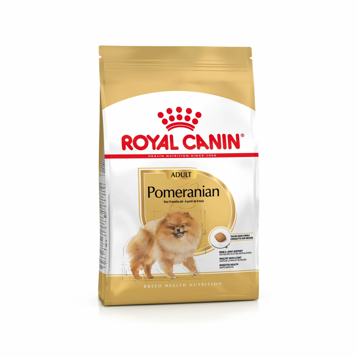 Les croquettes ROYAL CANIN® Pomeranian Adult sont spécialement formulées pour répondre aux besoins nutritionnels de votre Spitz nain âgé de 8 mois et plus.