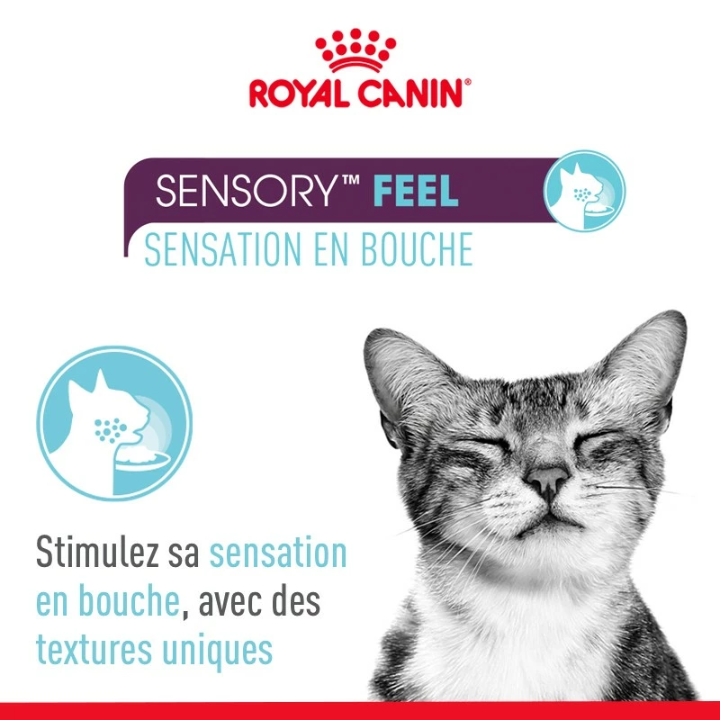 Le Royal Canin Sensory Multipack contient les sachets fraîcheur en sauce Sensory Smell, Sensory Taste et Sensory Feel.