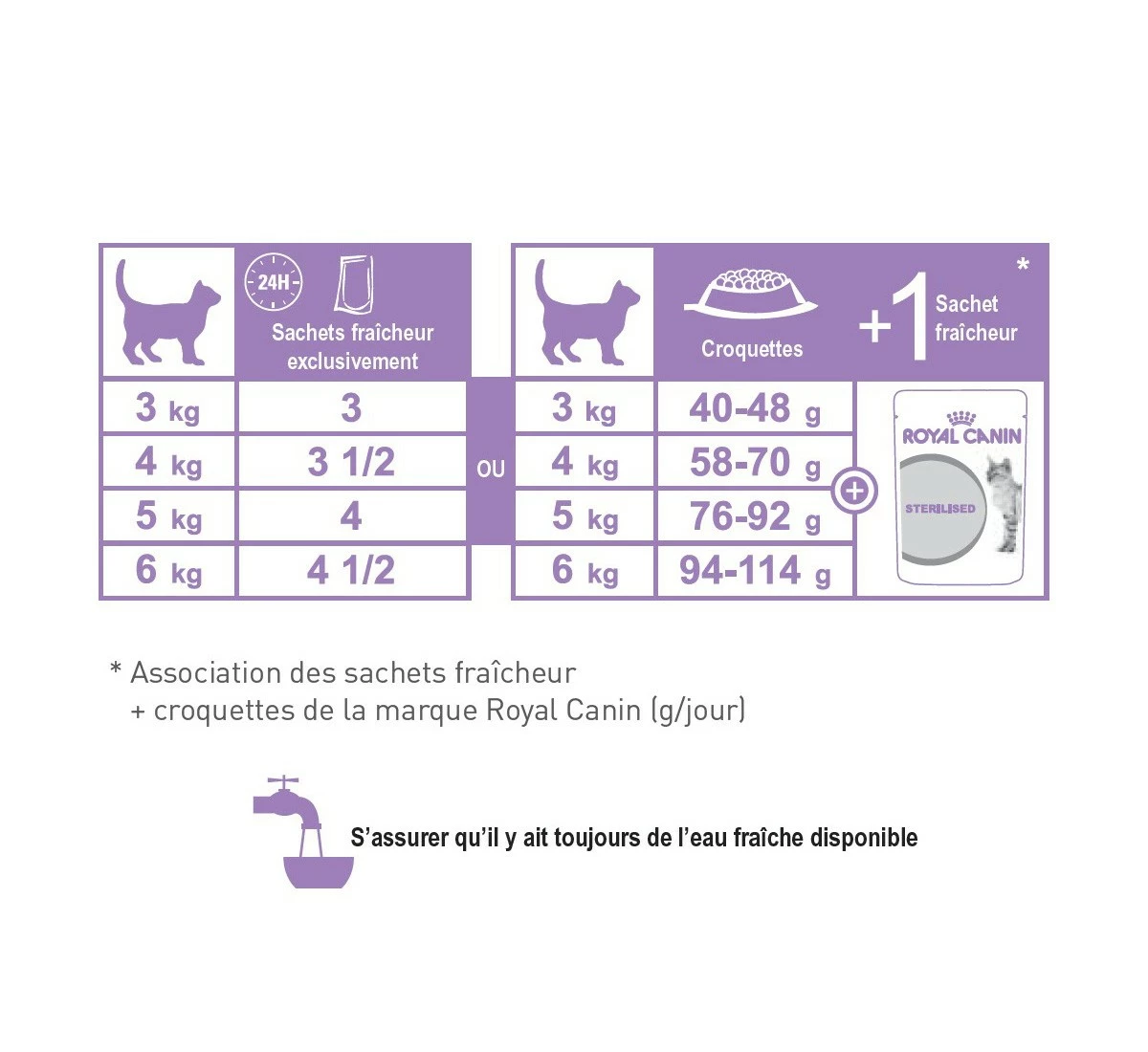 Les sachets fraĂ®cheur ROYAL CANIN® Sterilised conviennent aux chats adultes stĂ©rilisĂ©s.Â
