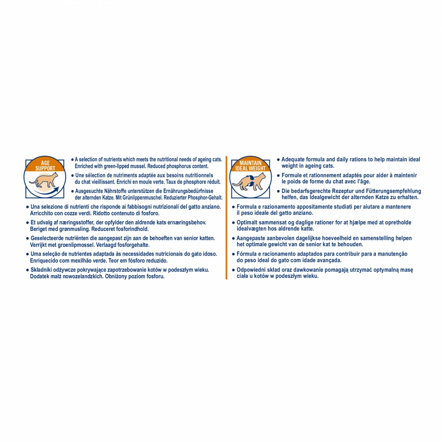 Par ailleurs, un système anti-âge spécifique (vitamines E et C, taurine et lutéine) permet de renforcer les défenses immunitaires affaiblies du chat âgé et contribue à ralentir le vieillissement cellulaire.