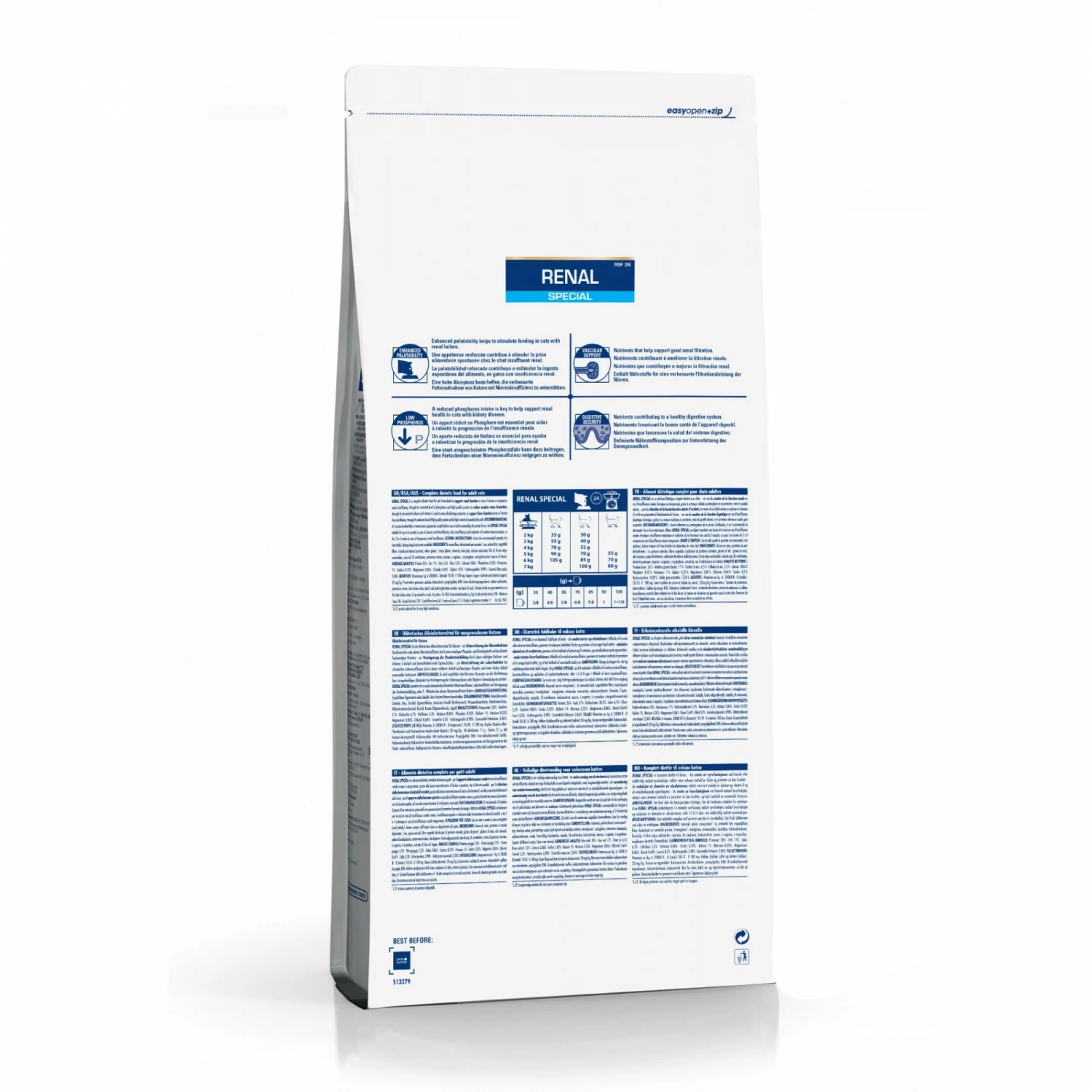 L’appĂ©tit d’un chat insuffisant rĂ©nal est fortement perturbĂ©. L’appĂ©tence de l’aliment est donc un critère primordial. Les croquettes Renal Special sont particulièrement appĂ©tentes et sont faciles Ă croquer mĂŞme par des chats souffrant de gingivite.. Cette appĂ©tence renforcĂ©e favorise la reprise de l’alimentation spontanĂ©e.
