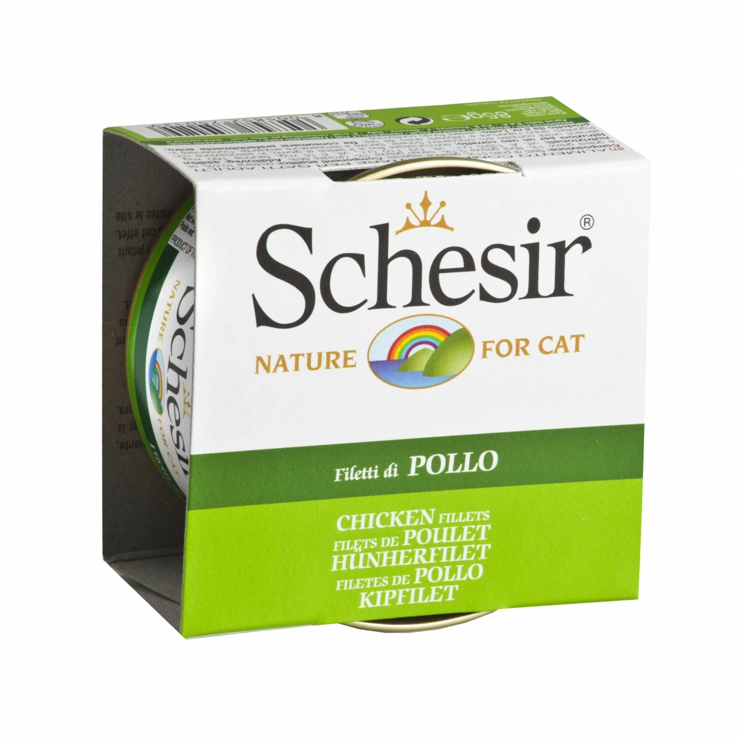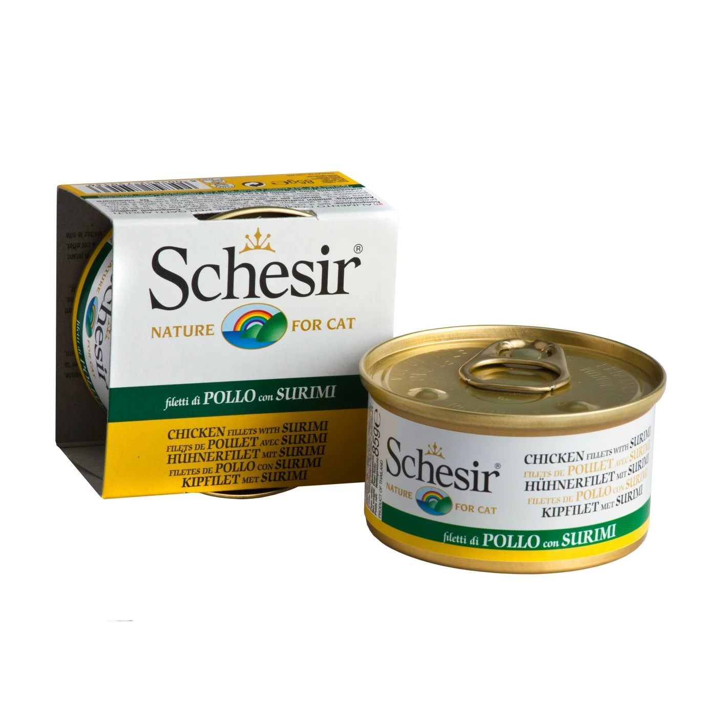 Les aliments Schesir sont composés de poissons pêchés en haute mer et de viandes provenant d’élevages contrôlés et sans hormones. Ils sont sans colorants et sans conservateurs.