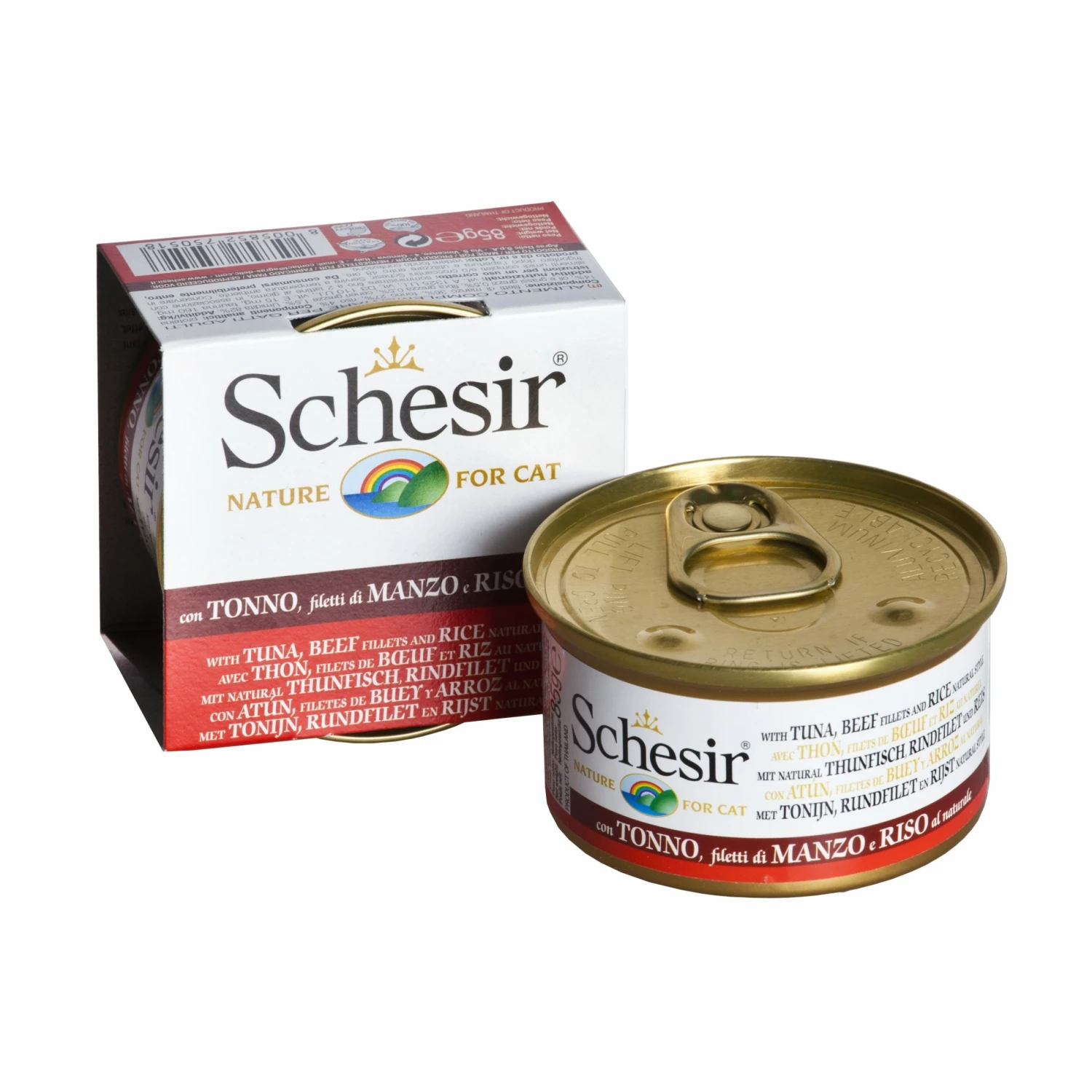 Les viandes et les poissons utilisés pour la fabrication des pâtées Schesir sont de qualité équivalente à ceux utilisés pour la consommation humaine. Les viandes proviennent d’élevages sans hormones et les poissons sont pêchés en haute mer.