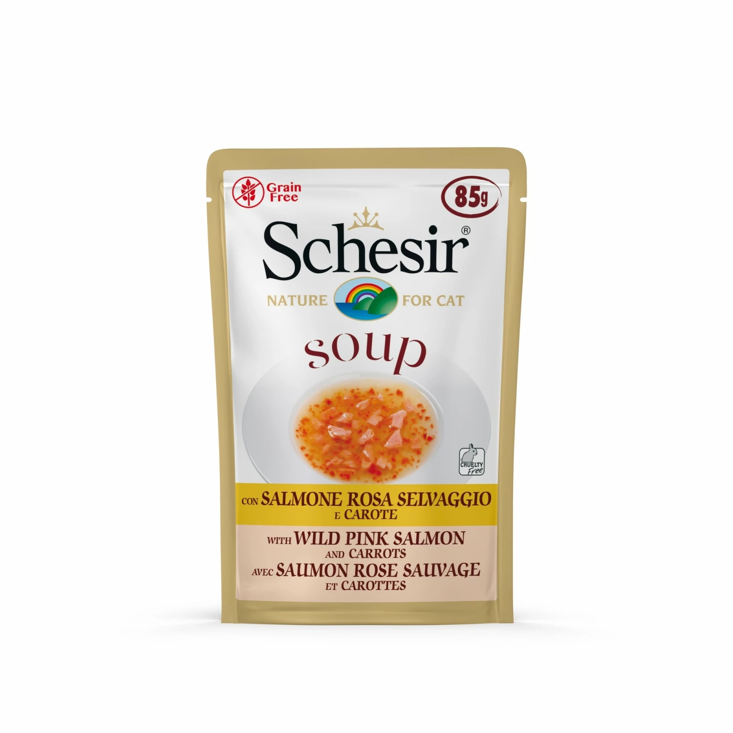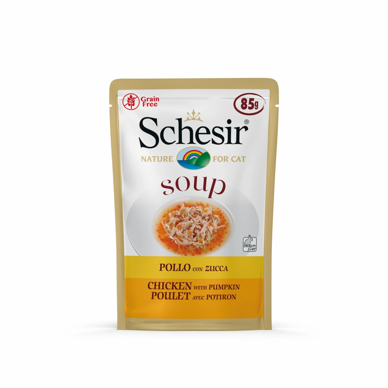 La gamme de pâtées Schesir Soup pour chat adulte propose des recettes savoureuses sous forme de soupe.