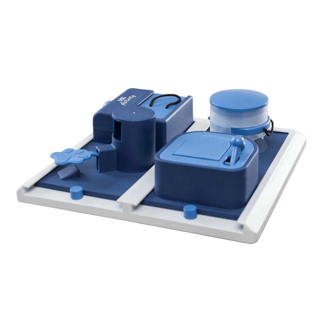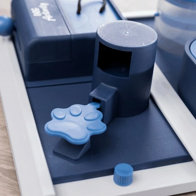 - Les compartiments permettent de cacher des croquettes ou des friandises, en guise de récompense,