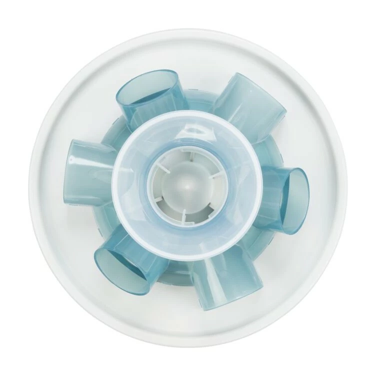 - 6 tuyaux à inclinaisons différentes pour rendre la prise d’aliments plus compliquée