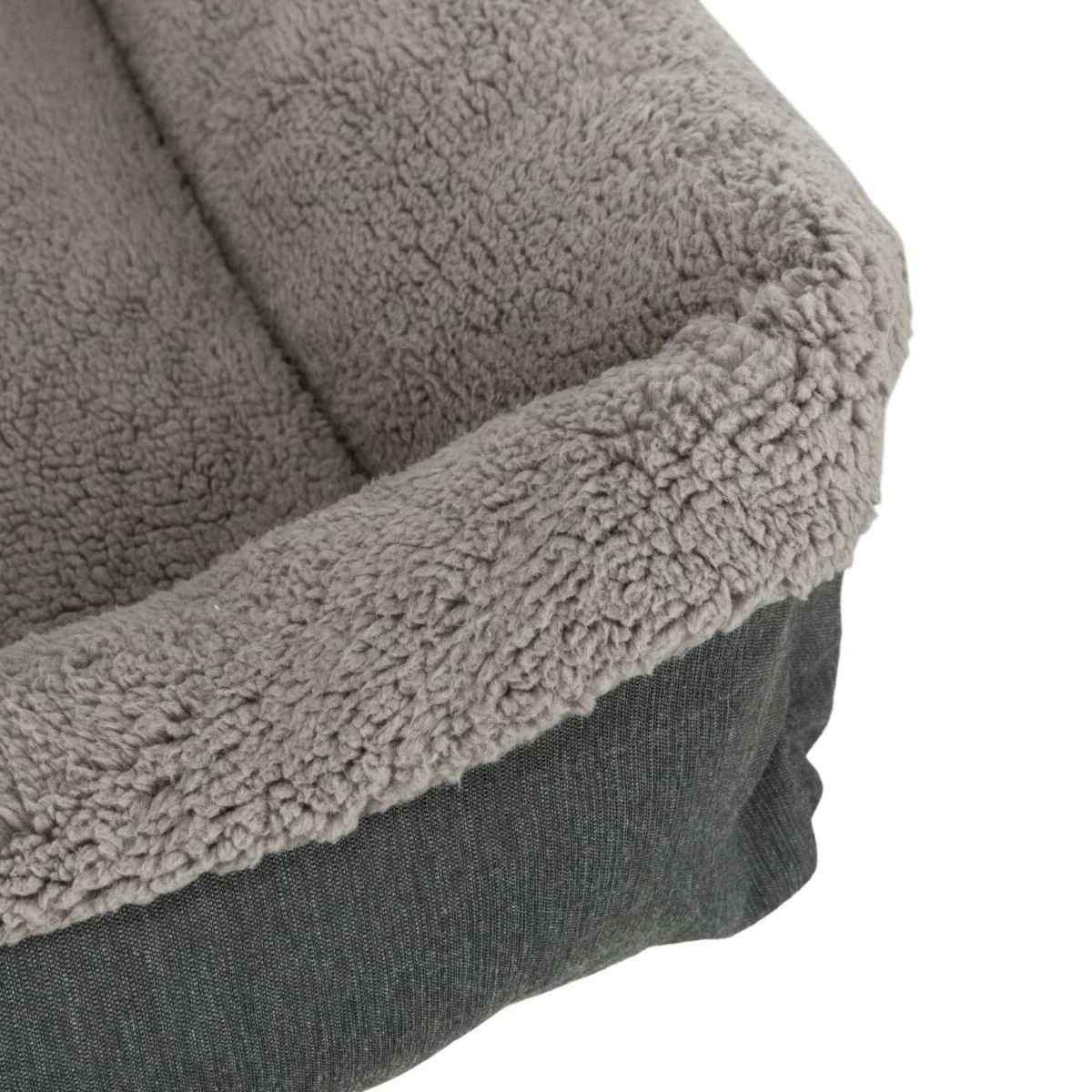 Fabriqué en Europe, ce panier est en peluche de haute qualité et dispose d’un tissu résistant. Le coussin réversible et le rebord contiennent des flocons de mousse visco-élastique pour un effet mémoire de forme.