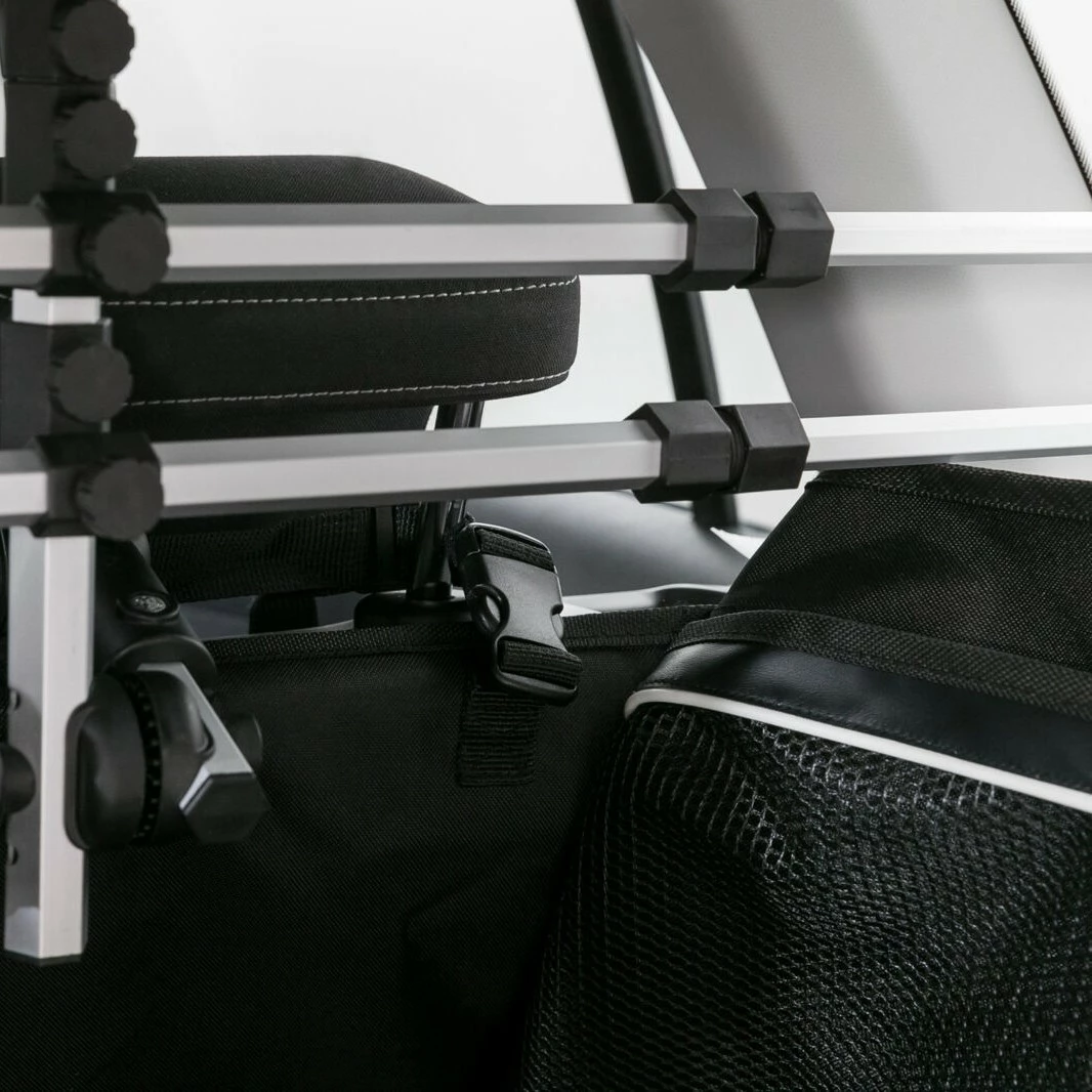 - Facile, il s’attache aux appuie-tête avec des sangles et sur les côtés avec des sangles à crochets et à boucles