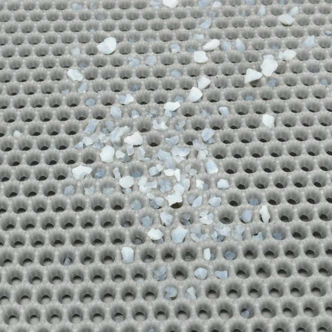 Il retient et stocke la litière collée aux pattes de votre petit félin lorsqu’il sort de son bac ou de sa maison de toilette grâce à son revêtement alvéolaire.