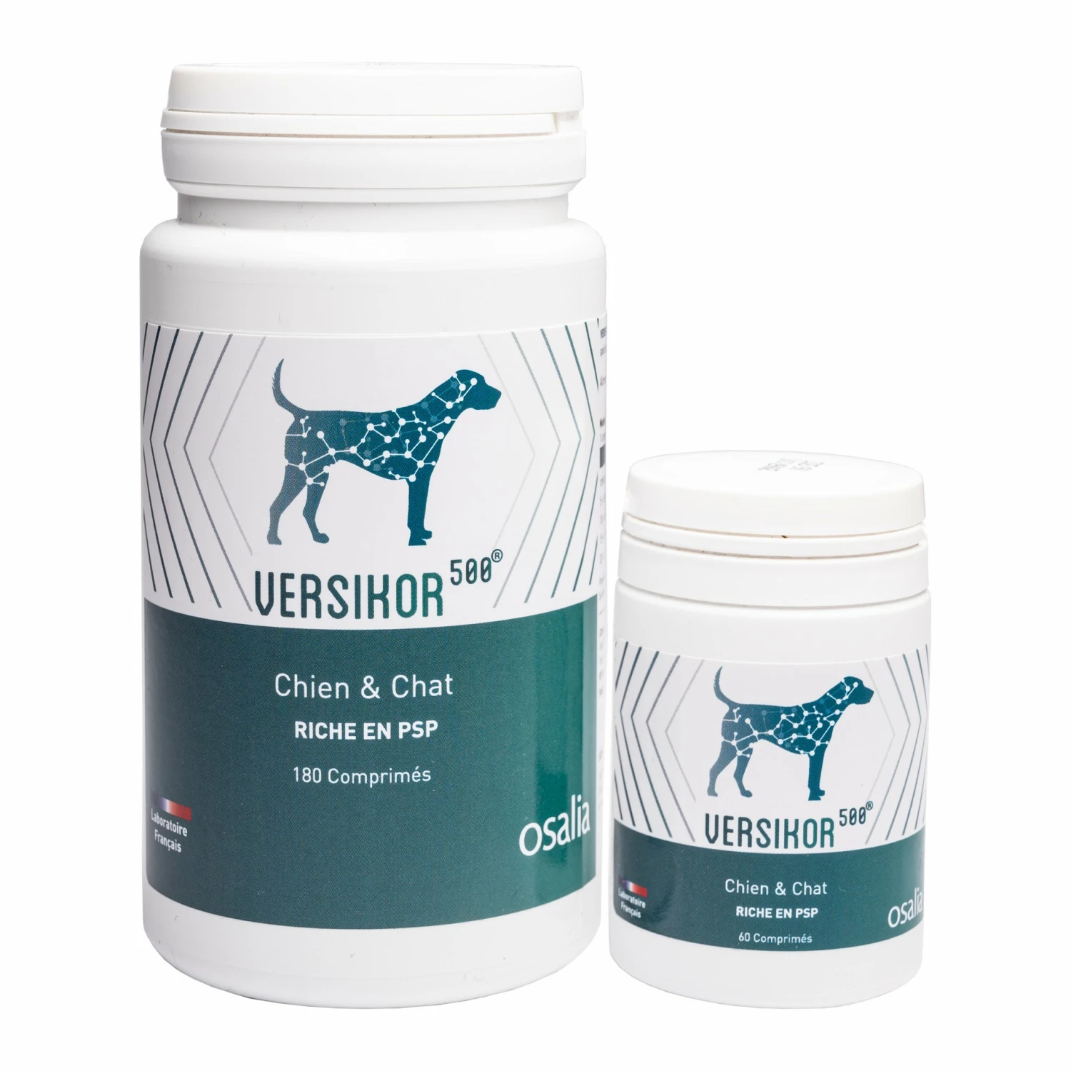 L’aliment complémentaire Versikor 500®, est destiné au soutien de la qualité de vie, du poids et de l’appétit des chiens et des chats.