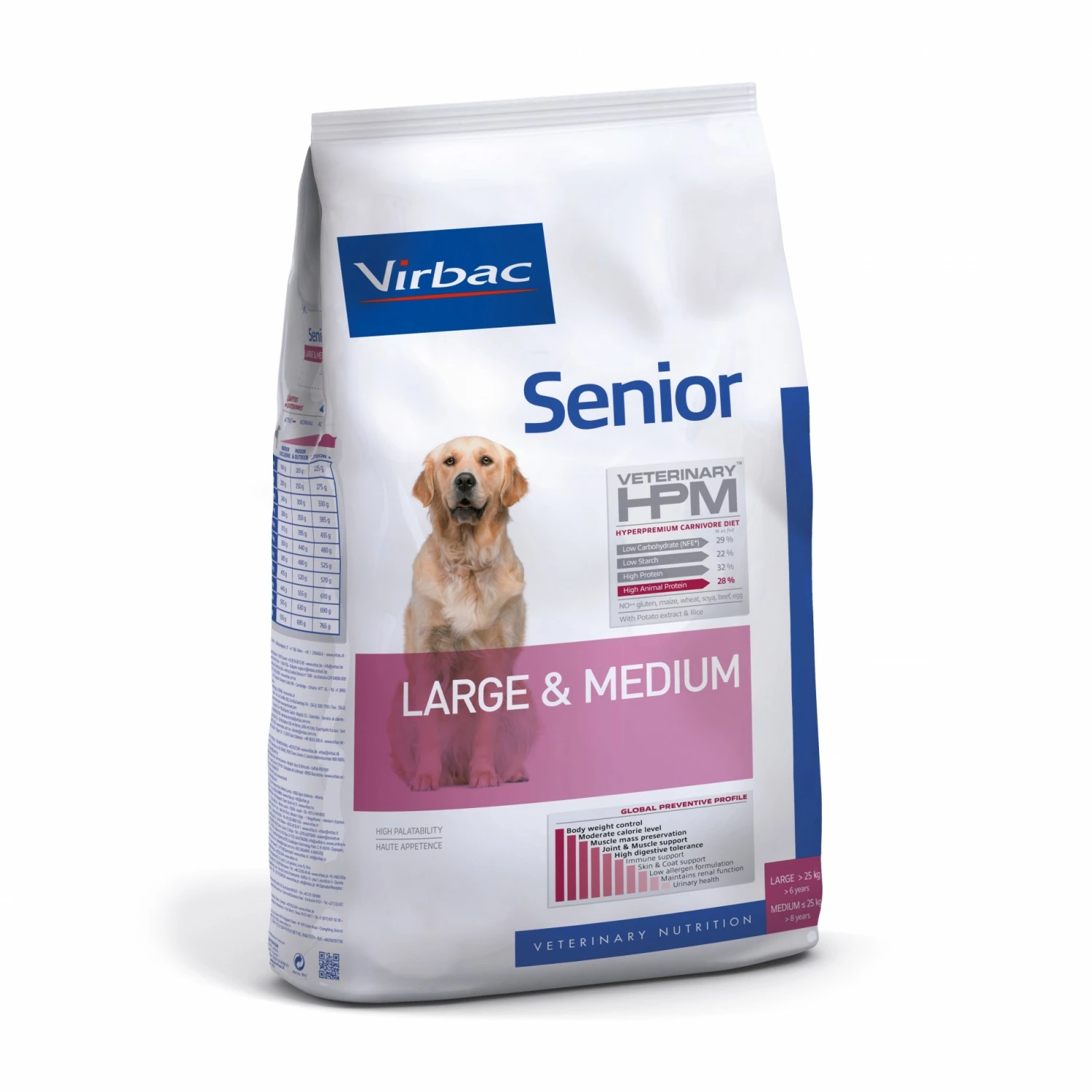 Les croquettes Virbac VETERINARY HPM Senior Medium & Large sont parfaitement adaptées pour les chiens de moyenne race (11 à 25 kg) de plus de 8 ans, et de grande race (>25kg) de plus de 6 ans.