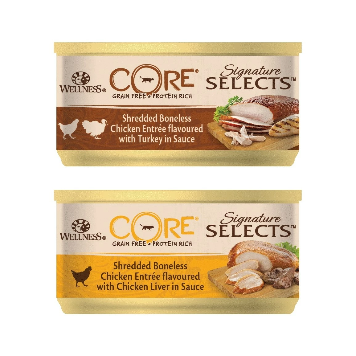 Les pâtées Wellness CORE Signature Selects sont complètes et équilibrées pour les chats adultes. Ces pâtées sont déclinées sous trois formes : des lamelles délicates, des morceaux effilochés ou de tendres dés, tous servis dans une délicieuse sauce.