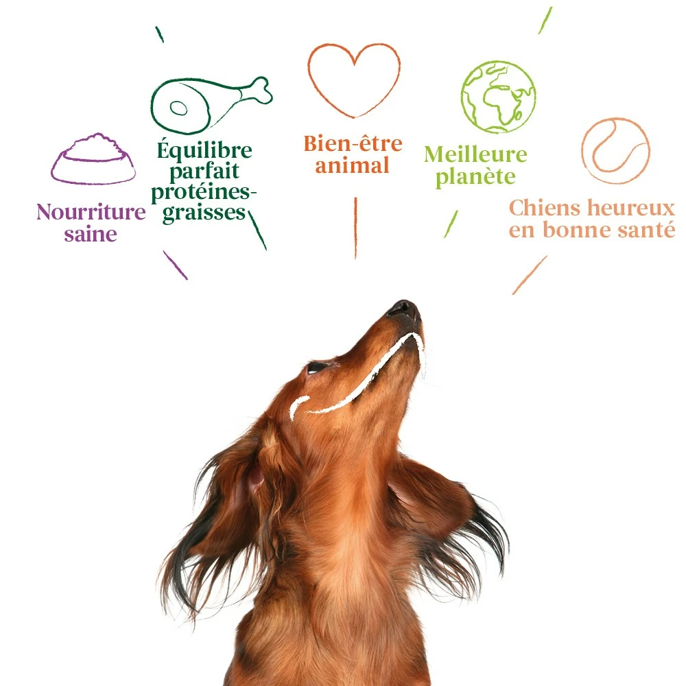 Les barquettes au boeuf contiennent aussi du persil et du thym, bons pour les reins, le système digestif et les articulations de votre chien. Cela améliore aussi les griffes, les poils et la peau. Le pelage de votre chien va briller à nouveau !