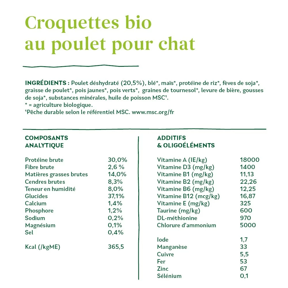 Les croquettes Yarrah au hareng MSC* et au poulet constituent un aliment Bio, complet, équilibré et délicieux. Les croquettes Yarrah sont composées de poulet biologique (28%) élevé en liberté et nourri de produits purs et biologiques, de hareng MSC* riche en oméga 3&6 dont les effets sont bons pour la peau et le pelage.